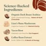 The most mushroom species (7) in the instant coffee category at the best per-serving value ($0.40). With 3,697 Amazon reviews at 4.4 stars, it has strong social proof. The 60-serving pouch lasts two months — double the typical 30-serving competitors. Organic Arabica coffee base with real coffee taste.