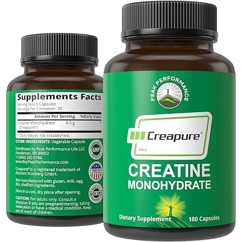 PerformancePeak Performance Creapure Creatine Monohydrate 180 Capsules - Ultra High Purity German Made Creatine